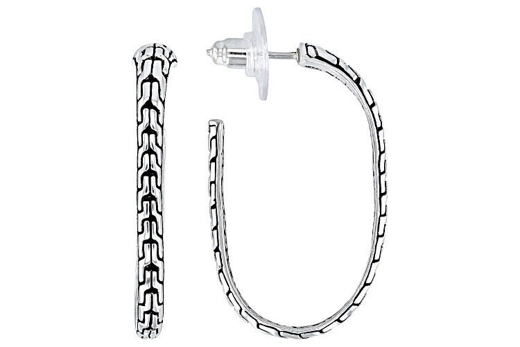 Artisan Collection of Bali™ Sterling Silver Hoop Earrings. Measures approximately 1.55"L x .13"W. Push back closure. Finished under gallery. Oxidized finish.