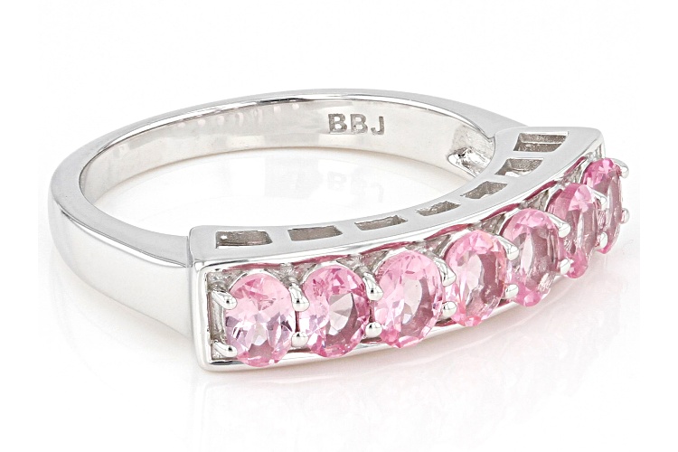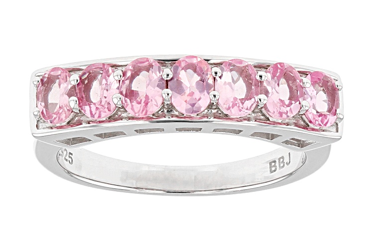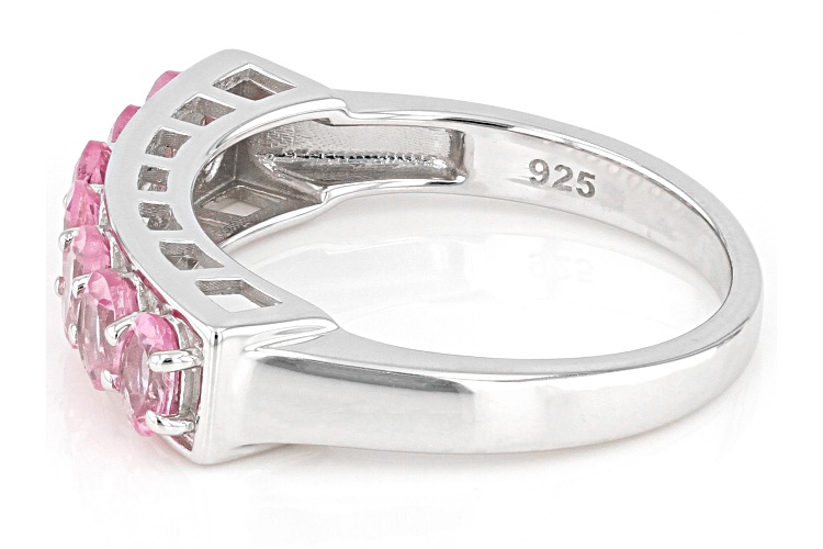 0.95ctw Oval Pink Spinel Rhodium Over Sterling Silver Band Ring - Size 7