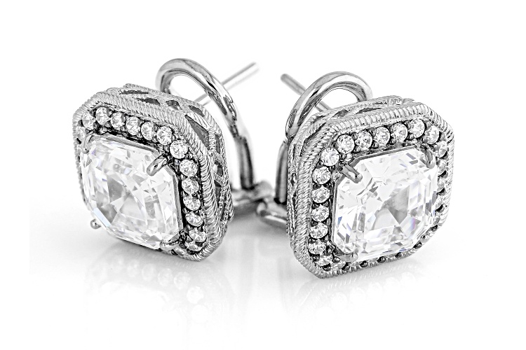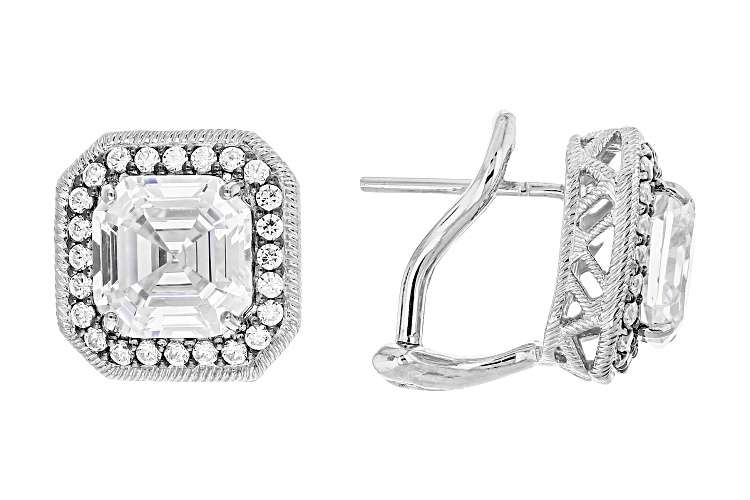 • Judith Ripka Haute Collection 8.20ctw Asscher Cut Bella Luce® Rhodium Over Sterling Silver Earrings