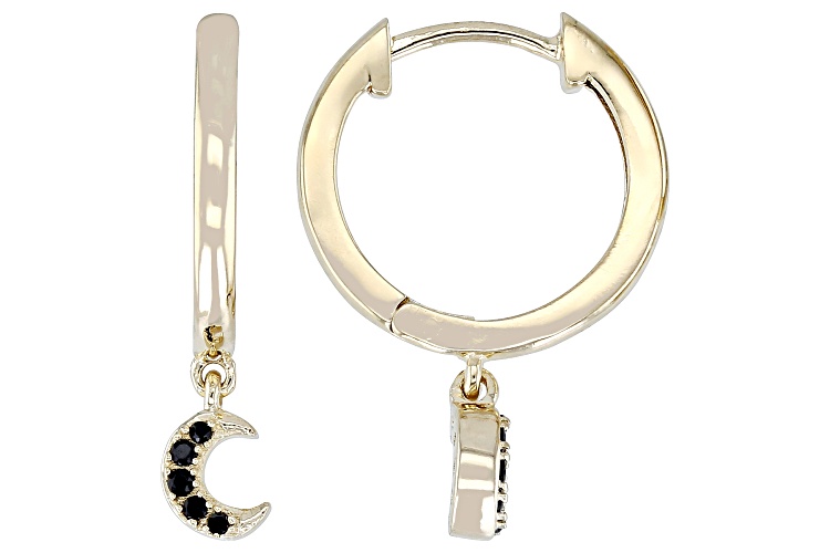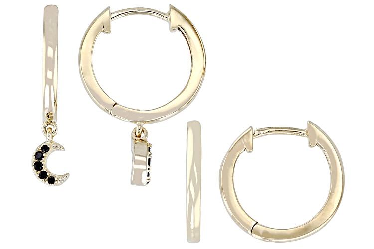 • 0.07ctw Round Black Spinel Moon And Solid 18k Yellow Gold Over Sterling Silver Hoop Earring Set