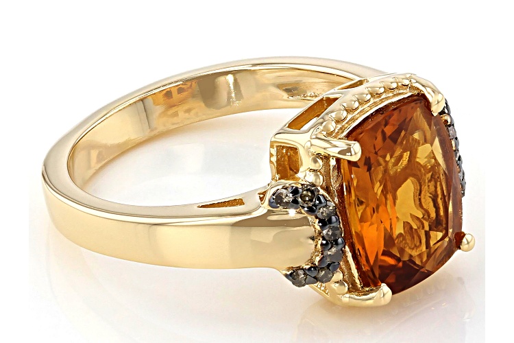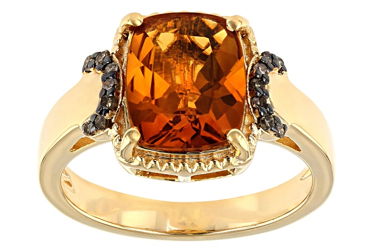 • 2.34ct Cushion Madeira Citrine & 0.07ctw Champagne Diamond Accent 18k Yellow Gold Over Silver Ring - Size 9