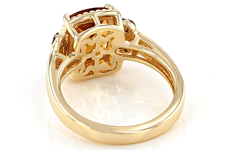 2.34ct Rectangular Cushion Madeira Citrine and .07ctw Round Champagne Diamond Accent 18k Yellow Gold Over Sterling Silver Ring. Measures approximately 0.56"L x 0.47"W. Not sizeable.