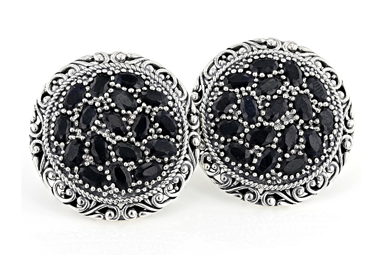 • Artisan Collection of Bali™ 9.94ctw Black Sapphire Sterling Silver Button Earrings