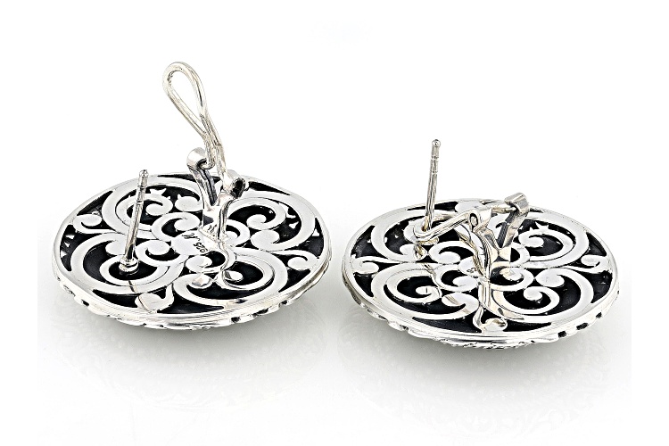 Artisan Collection of Bali™ 9.94ctw Oval Black Sapphire Sterling Silver Button Earrings. Oxidized. Measures Approximately 1.11"L x 1.11"W. Omega Backings.