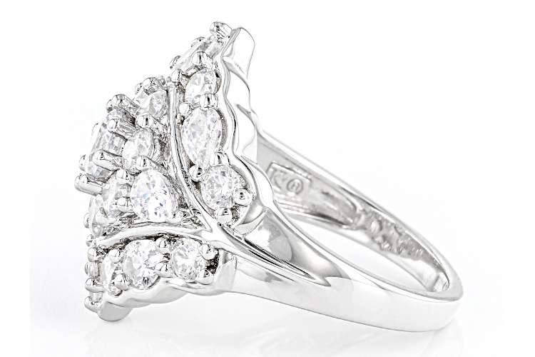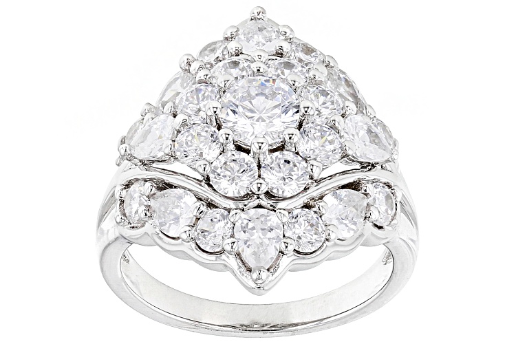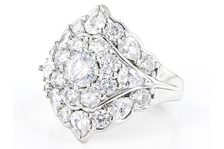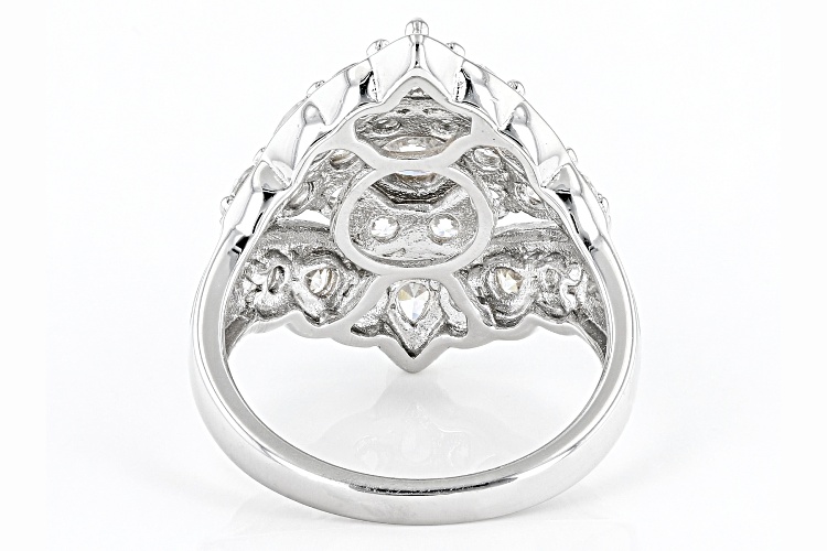 Pre-Owned Bella Luce® white diamond simulant 5.19ctw round and pear, platinum over sterling silver ring. Measures approximately 0.81" L x 0.81" W and is not sizable. Diamond equivalent weight is 3.14ctw.. This product may be a customer return, vendor sample, or on-air display and is not in its originally manufactured condition. It may not be new. In some instances, these items are repackaged by JTV.