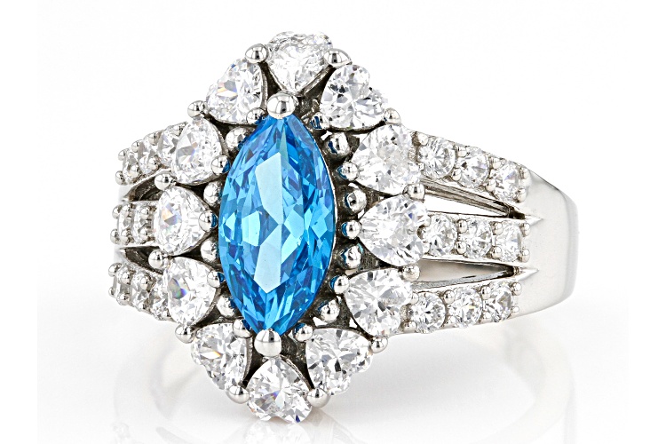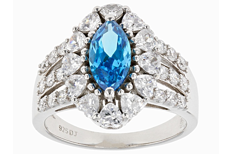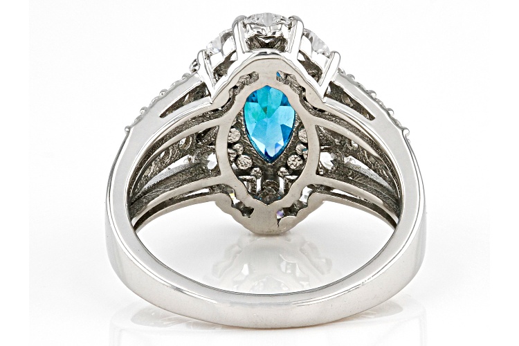 Bella Luce® Esotica™ neon apatite and white diamond simulants 4.35ctw marquise, heart, and round, rhodium over sterling silver ring. Measures approximately 0.81" L x 0.63" and is not sizable.