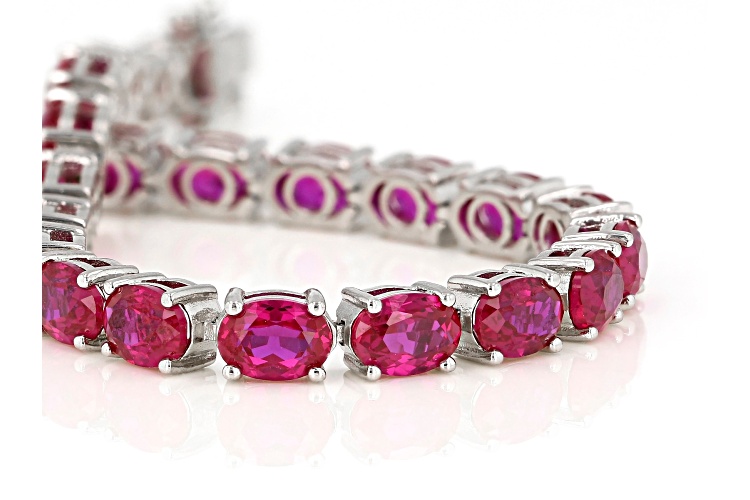 • Lab Created Ruby Oval 7x5mm Rhodium Over Sterling Silver Tennis Bracelet 7.25