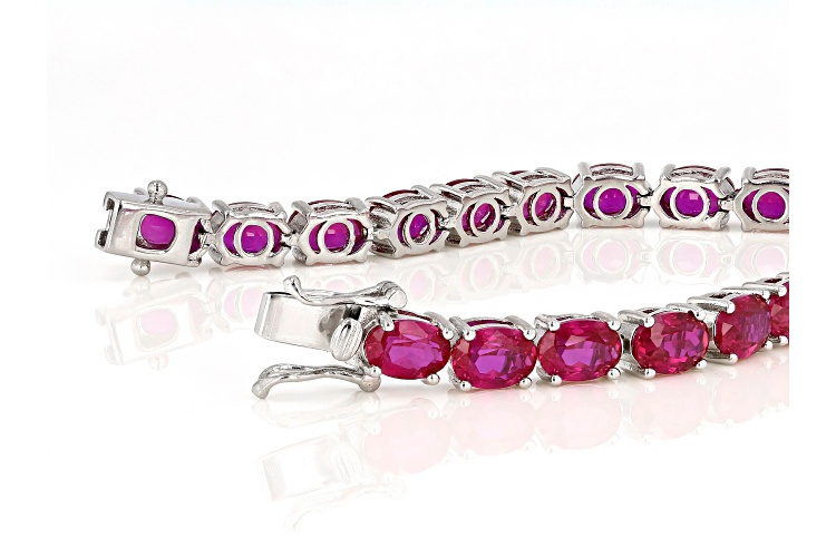 Lab Created Ruby Oval 7x5mm Rhodium Over Sterling Silver Tennis Bracelet 7.25" 24.68ctw - Size 7.25