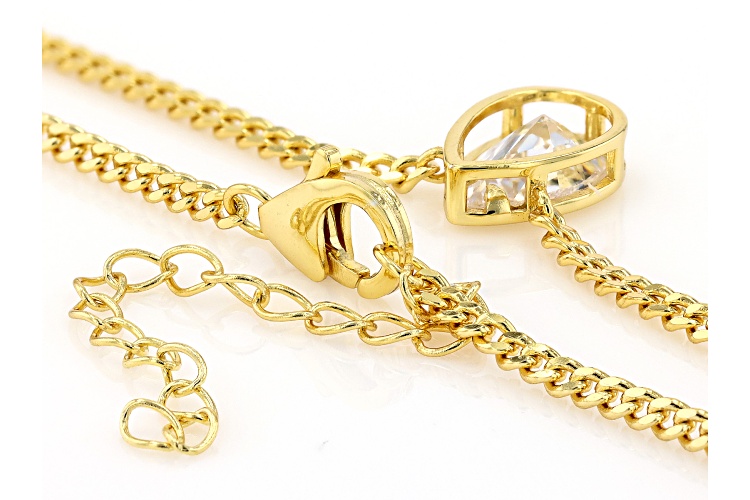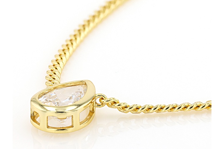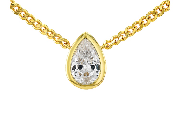 Bella Luce® white diamond simulant 2.10ctw pear, Eterno™ 18k yellow gold over sterling silver necklace. Necklace drop measures approximately 0.37" L x 0.30" W. Curb chain measures 16" L x 0.03" W and has a lobster claw clasp closure. The diamond equivalent weight is 1.27ctw.