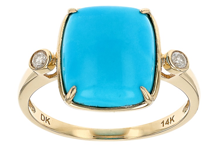 Pre-Owned 12x10mm Rectangular Cushion Blue Sleeping Beauty Turquoise With 0.03ctw Round White Diamond 14k Yellow Gold Ring. Measures Approximately 0.68"L x 0.50"W. . This product may be a customer return, vendor sample, or on-air display and is not in its originally manufactured condition. It may not be new. In some instances, these items are repackaged by JTV.
