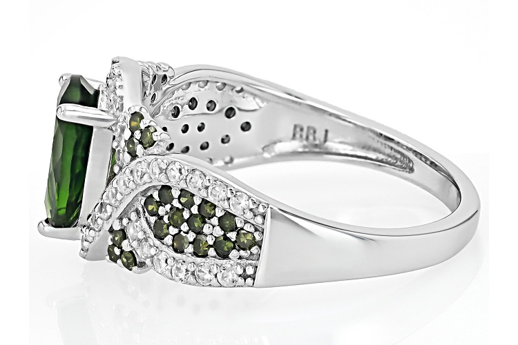 • 1.17ct Chrome Diopside, .27ctw Green Diamond With .56ctw White Zircon Rhodium Over Silver Ring - Size 7