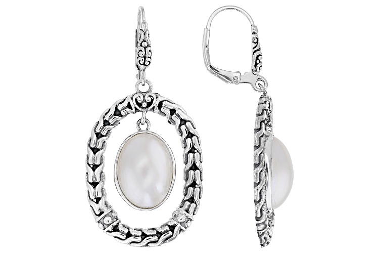 Artisan Collection of Bali™ 13.5x9.5mm White Cultured Mabe Pearl Sterling Silver Earrings. Oxidized. Measures Approximately 1.72"L x 0.82"W. Lever back Backings.