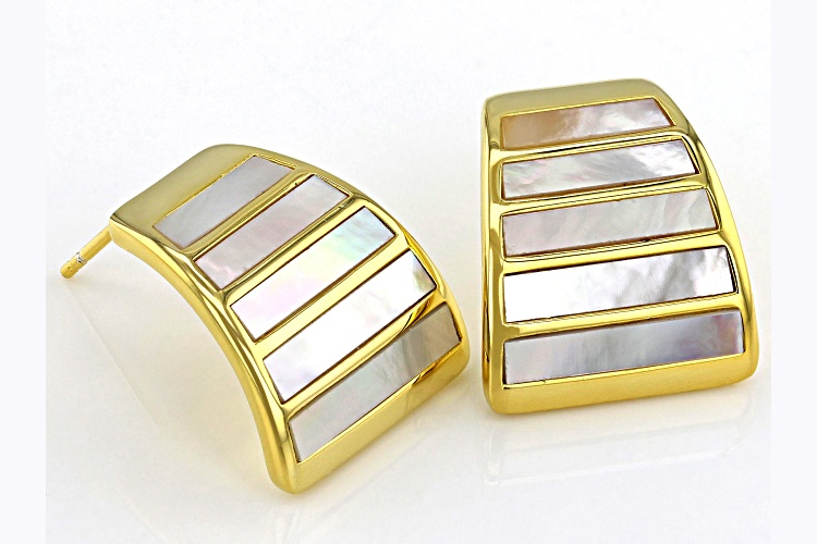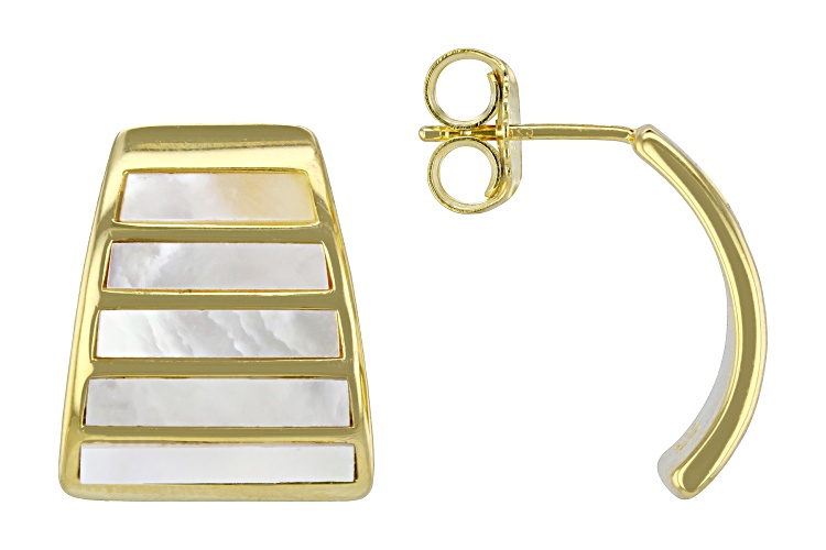 • Pacific Style™ White Mother-Of-Pearl 18k Yellow Gold Over Sterling Silver Earrings
