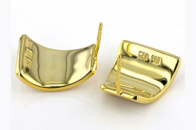 Pacific Style™ White Mother-Of-Pearl 18k Yellow Gold Over Sterling Silver Inlay Earrings. Measures Approximately 0.74"L x 0.62"W. Push Backings.
