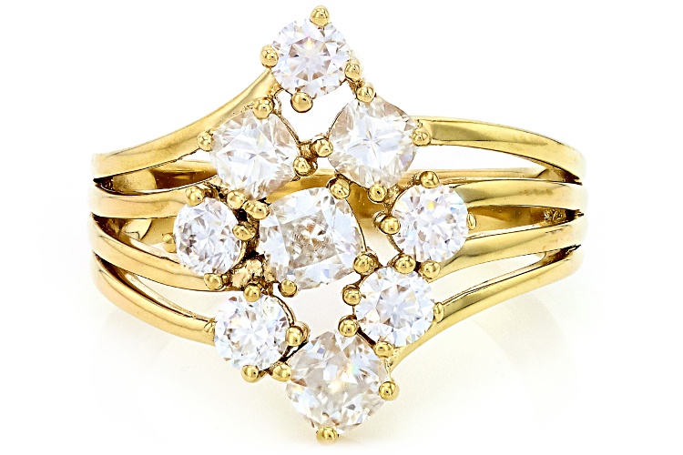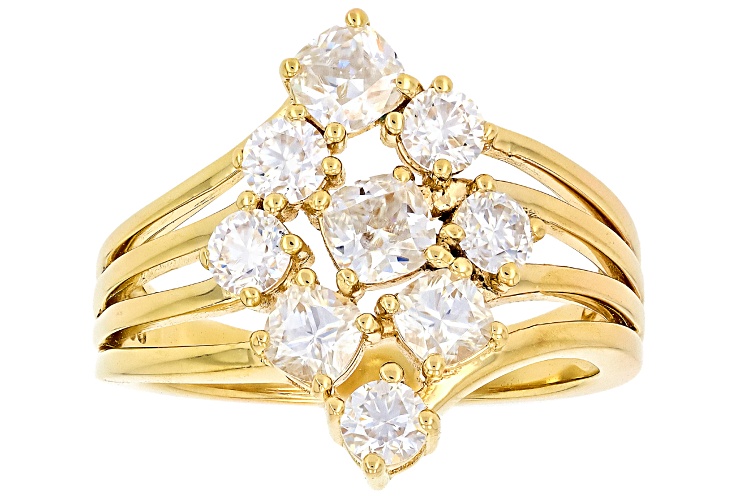 MOISSANITE FIRE® 1.75CTW DEW CUSHION CUT AND ROUND BRILLIANT 14K YELLOW GOLD OVER SILVER RING - Size 6
