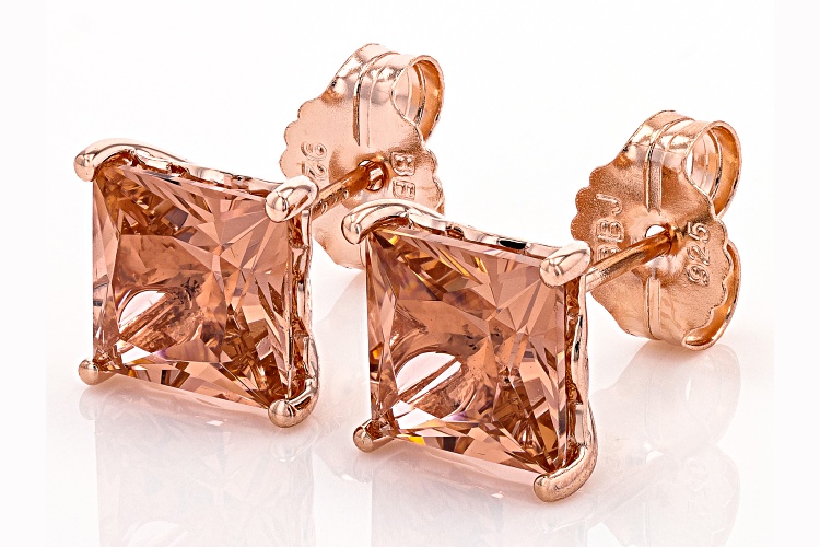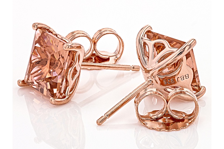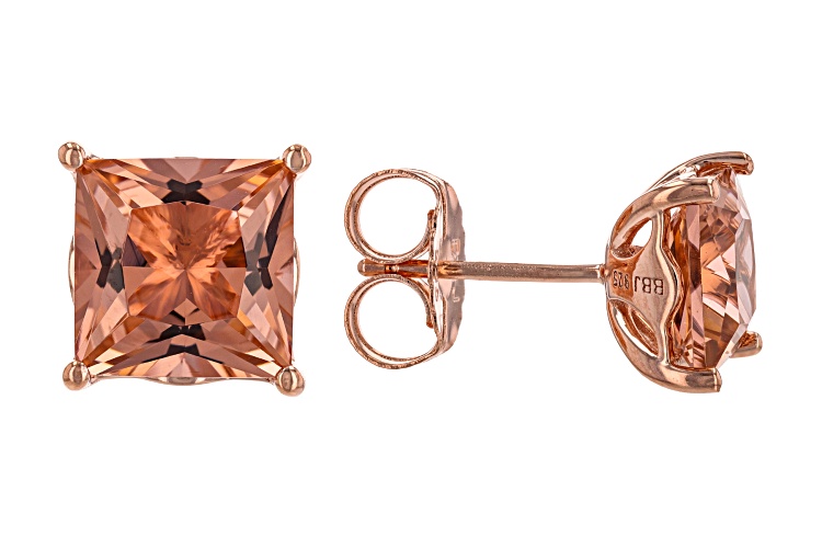 Bella Luce® Esotica™ Cor-De-Rosa Morganite™ simulant square cushion, Eterno™ 18k rose gold over sterling silver earrings. Measures approximately 0.38" L x 0.31" W and has push back backings.