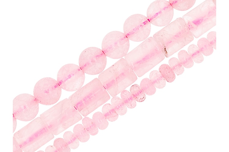• Rose Quartz Round, Tube, & Rondelle Bead Strand Set of 3