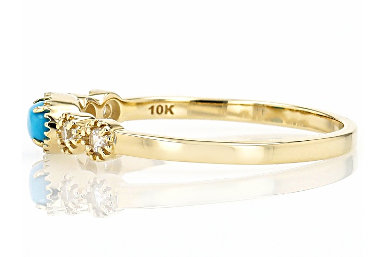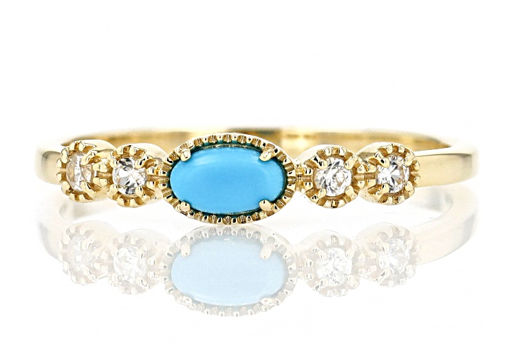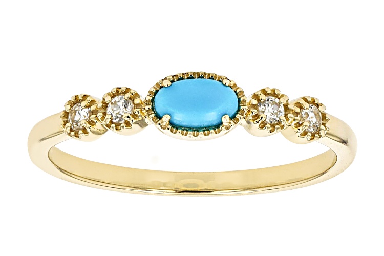 5x3mm Oval Blue Sleeping Beauty Turquoise With 0.12ctw Round White Zircon 10k Yellow Gold Ring. Measures Approximately 0.19"L x 0.62"W. Accent Stones Primarily Zircon.