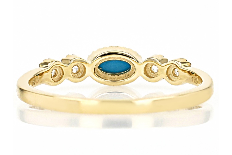• 5x3mm Sleeping Beauty Turquoise With 0.12ctw White Zircon 10k Yellow Gold Ring - Size 8