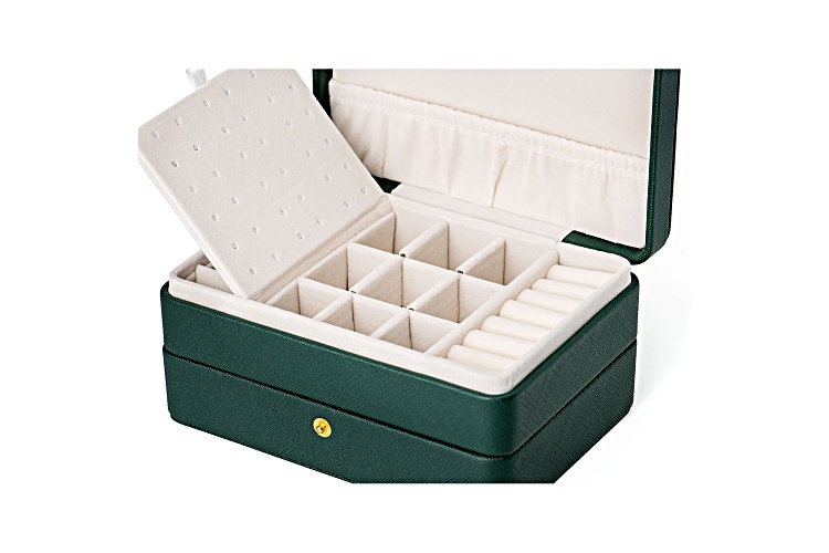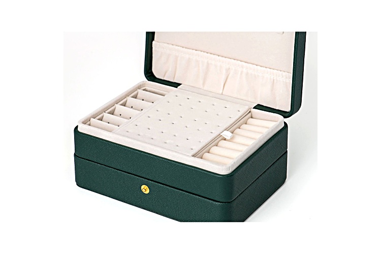 Green 3 Layer Jewelry Box appx 6.7x4.7x3.14"