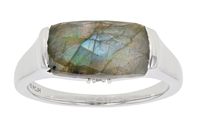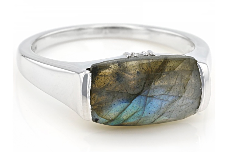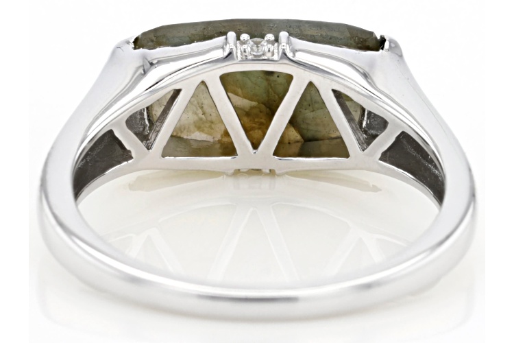 • 13x7mm Labradorite With .01ctw White Zircon Rhodium Over Sterling Silver Ring - Size 6