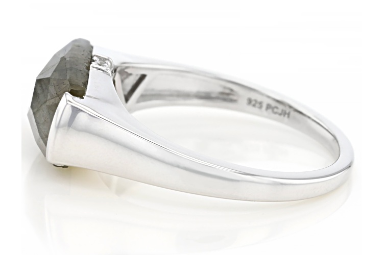 13x7mm Labradorite With .01ctw White Zircon Rhodium Over Sterling Silver Ring - Size 6