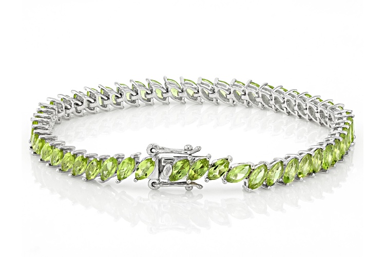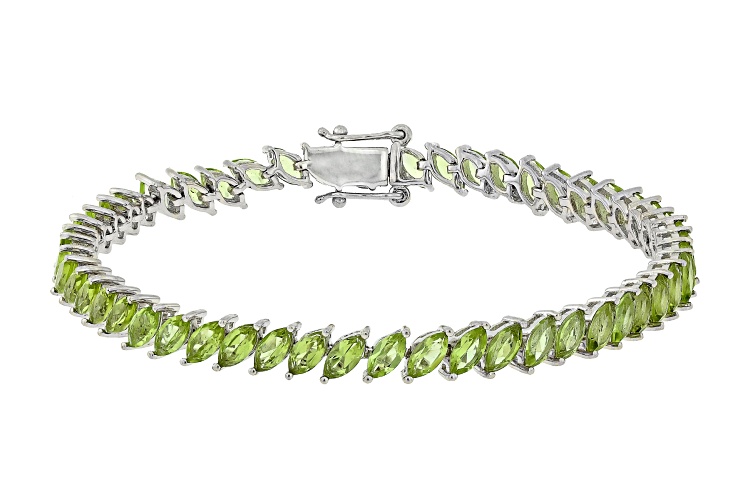 12.50ctw Marquise Manchurian Peridot™ Rhodium Over Sterling Silver Bracelet. Measures Approximately 0.23"W. Box Clasp with Double Safety. Stainless Steel Tongue.