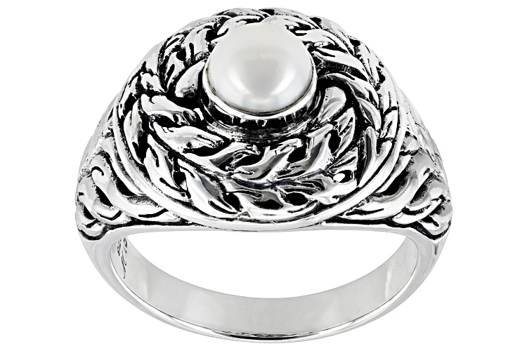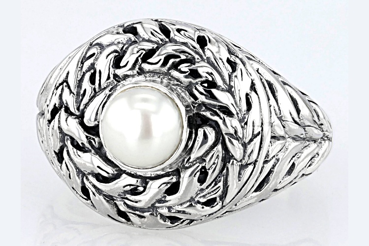 Artisan Collection of Bali™ 5.5-6.5mm Cultured Freshwater Pearl Sterling Silver Swirl Ring - Size 10