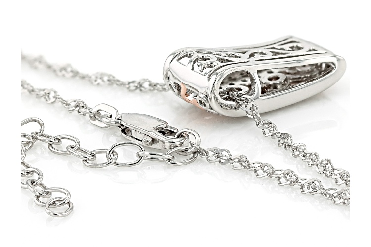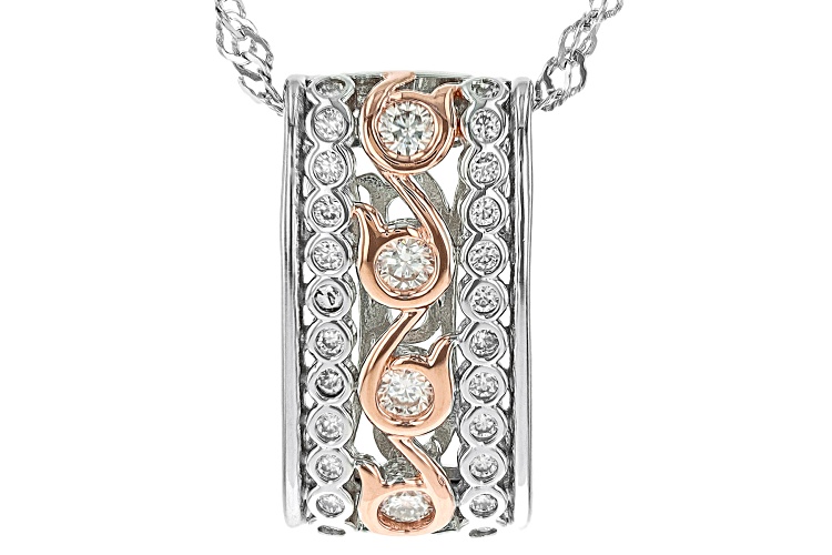 Moissanite Fire® .48ctw diamond equivalent weight round brilliant Platineve® with 14k rose gold over platineve pendant and 18-inch Singapore chain. Pendant measures approximately 11/16" L x 3/8" W. Chain has a lobster clasp and a two-inch extender. Actual moissanite weight is .40ctw.