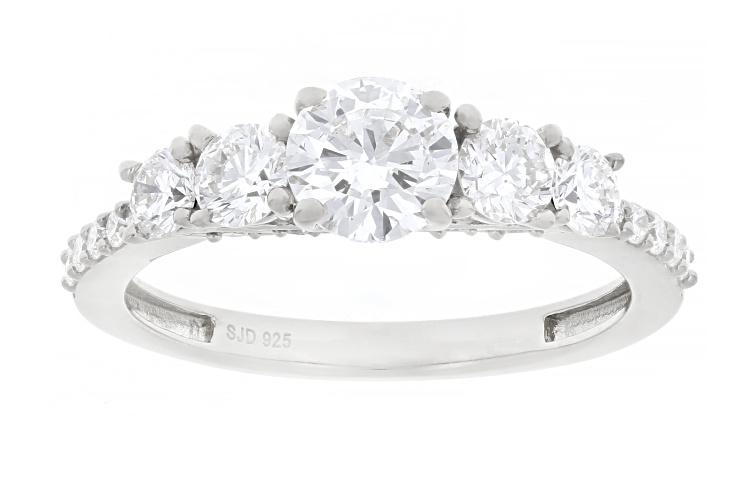Prazana® Lab-Grown Diamonds 0.63ct white round lab-grown diamond center stone with 0.70ctw round white lab-grown diamond, rhodium over sterling silver ring. Measures approximately 5/8"L x 3/16"W and is not sizeable. G-H color, SI clarity minimum.