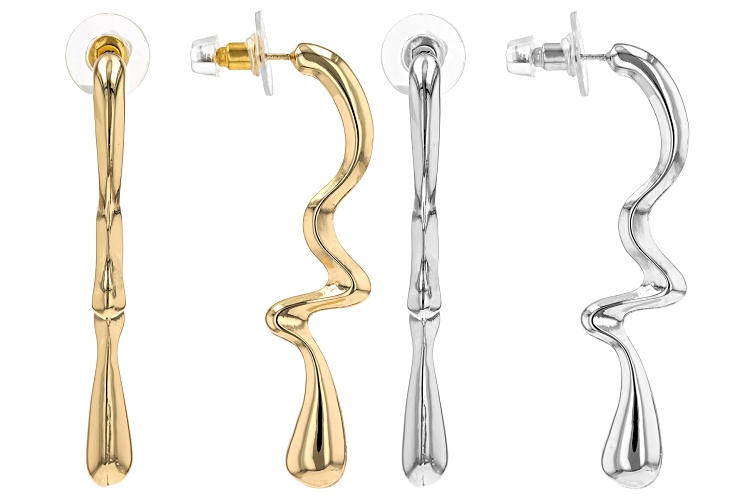 Off Park® Collection Gold Tone And Silver Tone "Melted Metal" Drop Earrings. Measures approximately 2.08"L x 0.22"W. Push backings.