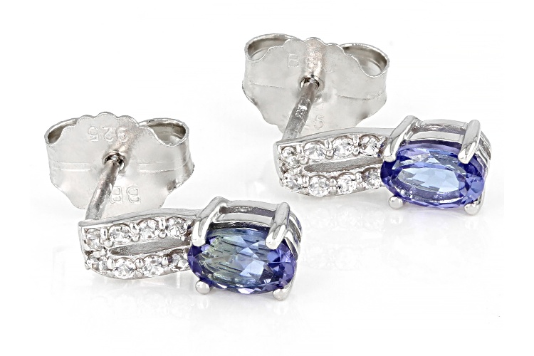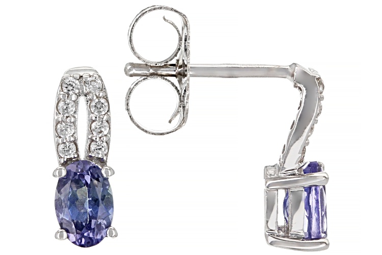 0.77ctw Oval Ocean Tanzanite With 0.18ctw Round White Zircon Rhodium Over Sterling Silver Earrings. Measures Approximately 0.49"L x 0.17"W. Push Backings. Accent Stones Primarily Zircon.