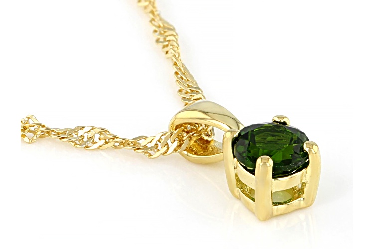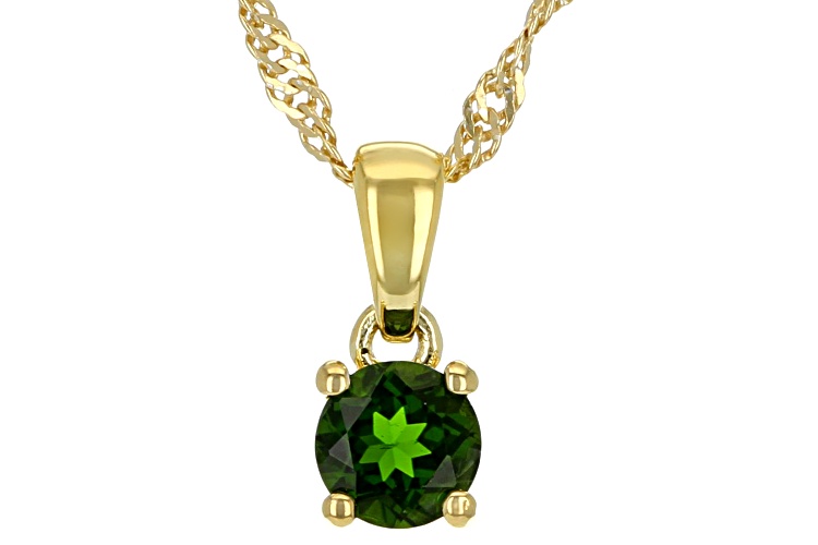0.23ct Round Chrome Diopside 18k Yellow Gold Over Sterling Silver Children's Pendant With 12" Singapore Chain. Measures Approximately 0.38"L x 0.15"W. 2mm Bail. Lobster Claw Clasp With a 2" Extender.