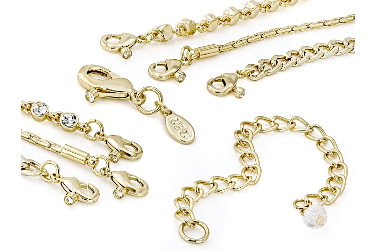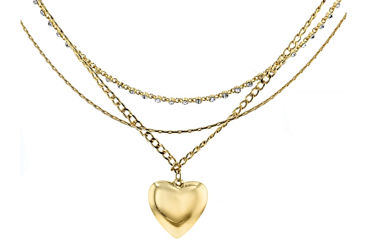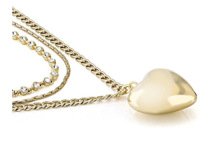 Off Park® Collection, Gold & Silver Tone White Glass Interchangeable Necklace Set With Heart Charm. Necklace Measures Approximately 1.80"L x 0.38"W. Drop Length Measures Approximately 1.50"L x 1.43" Drop Width. Removable. Lobster Claw Closure with 3.0" Extender. 2.2mm square wire oval link chain, 4mm tennis necklace, & 5.3x2mm flat curb chain.