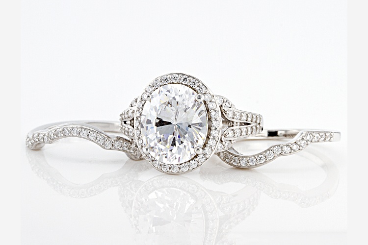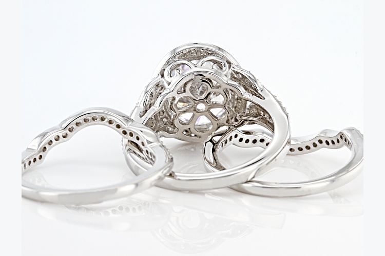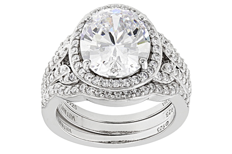 • Pre-Owned Bella Luce® 5.93ctw White Diamond Simulant Platinum Over Sterling Silver Ring Set(3.59ctw - Size 10