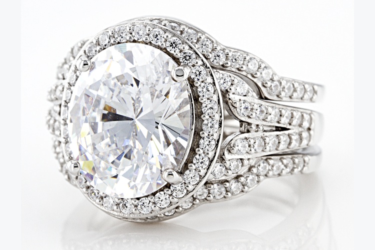 Pre-Owned Bella Luce® white diamond simulant 5.93ctw oval and round, platinum over sterling silver ring. Measures approximately 0.88" L x 0.63" W and is not sizable. Diamond equivalent weight is 3.59ctw.. This product may be a customer return, vendor sample, or on-air display and is not in its originally manufactured condition. It may not be new. In some instances, these items are repackaged by JTV.