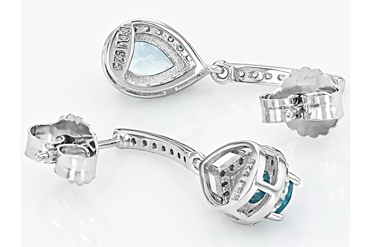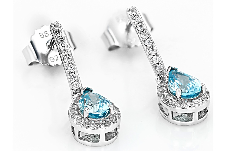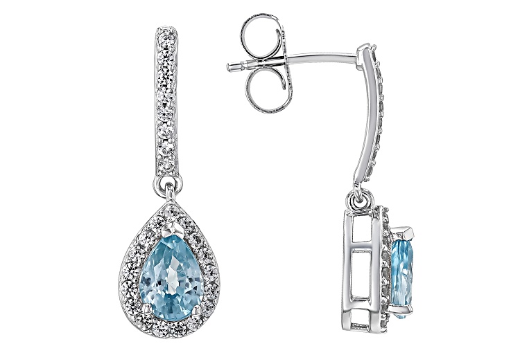 1.84ctw Pear Shape Blue Zircon With 0.58ctw Round White Zircon Rhodium Over Sterling Silver Earrings. Measures Approximately 0.25"L x 0.40"W. Push backings. Accent stones primarily zircon.
