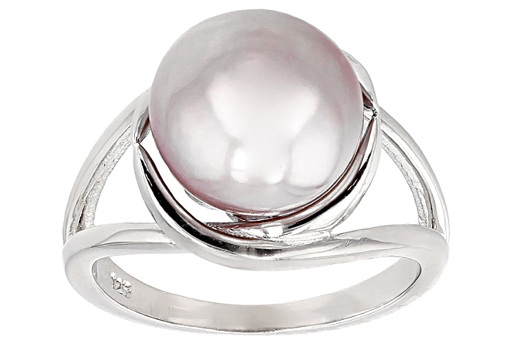 10.75-12mm lavender cultured Kasumiga pearl, rhodium over sterling silver ring. Measures approximately 3/8" L x 1/16" W and is not sizable. Colors, shapes, and sizes vary.