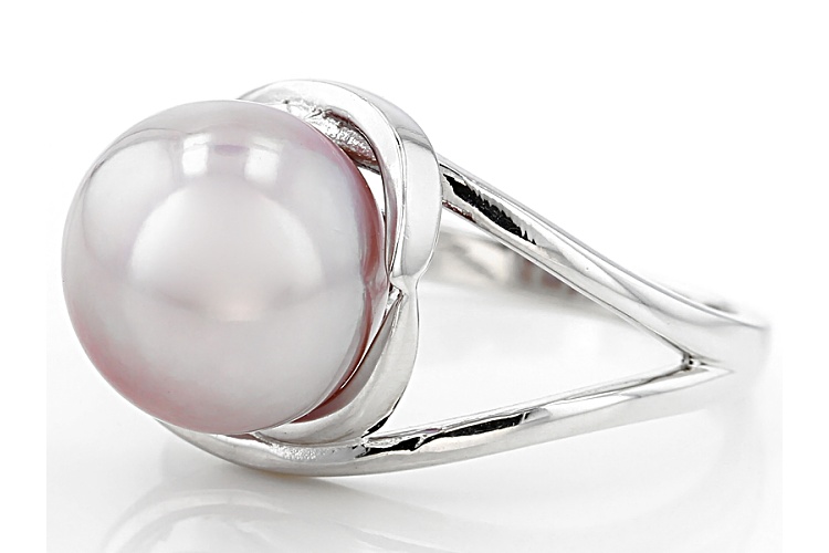 • 10.75-12mm Lavender Cultured Kasumiga Pearl Rhodium Over Sterling Silver Ring - Size 6