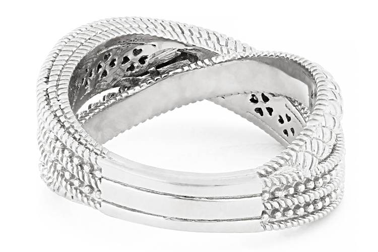 Judith Ripka 0.77ctw Round White Bella Luce® Diamond Simulant Rhodium Over Sterling Silver Haute Bypass Ring. Measures Approximately 0.34"L x 0.87"W. Not Sizeable.