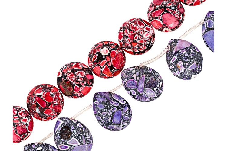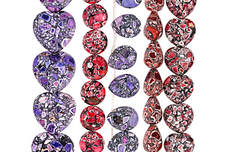 Red, Pink, & Purple Mosaic Mixed Ornamental Stone Assorted Shape and Size Bead Strands 1lb