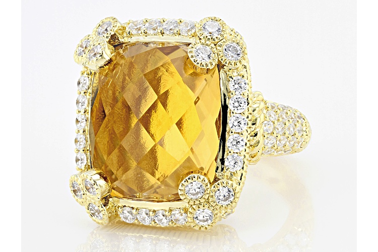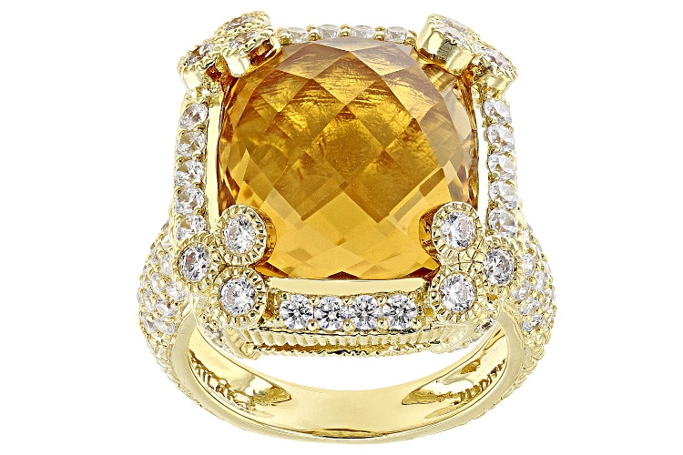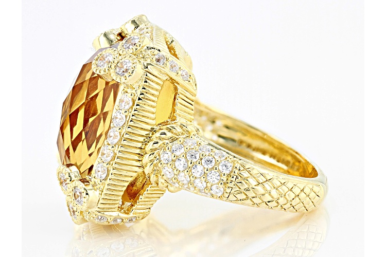 Judith Ripka 14.35ctw Champagne Quartz and Bella Luce® Diamond Simulant 14k Gold Clad Monaco Ring - Size 9