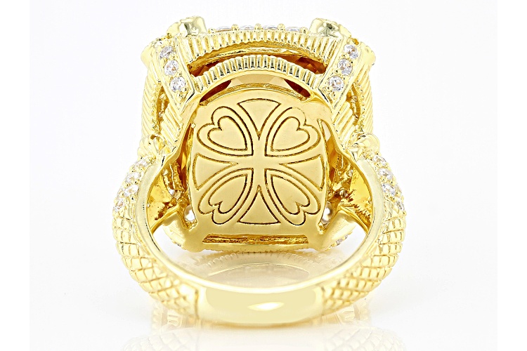 Judith Ripka 12.0ct Rectangular Cushion Champagne Quartz and 2.35ctw Bella Luce® Diamond Simulant 14k Gold Clad Monaco Ring. Measures Approximately 0.82"L x 0.73"W. Not Sizeable.