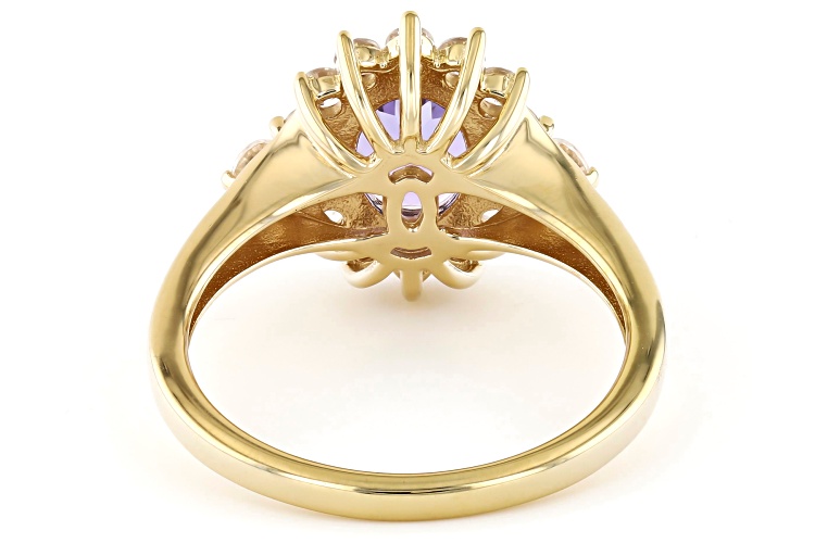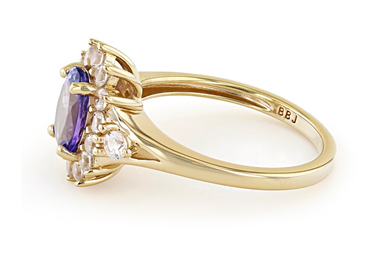 1.10ct Oval Tanzanite With 0.67ctw Round White Zircon 18k Gold Over Sterling Silver Halo Ring - Size 8