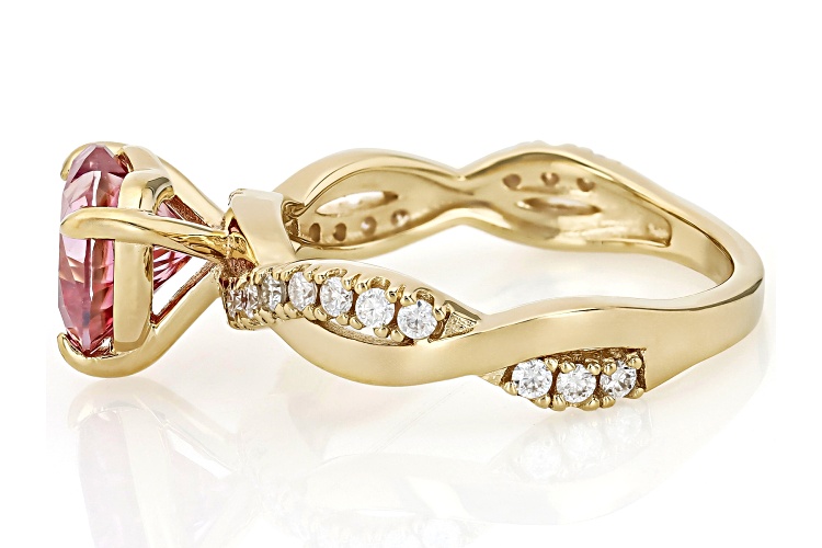 MOISSANITE FIRE® & PINK MOISSANITE 2.18CTW DEW 14K YELLOW GOLD OVER SILVER RING - Size 8