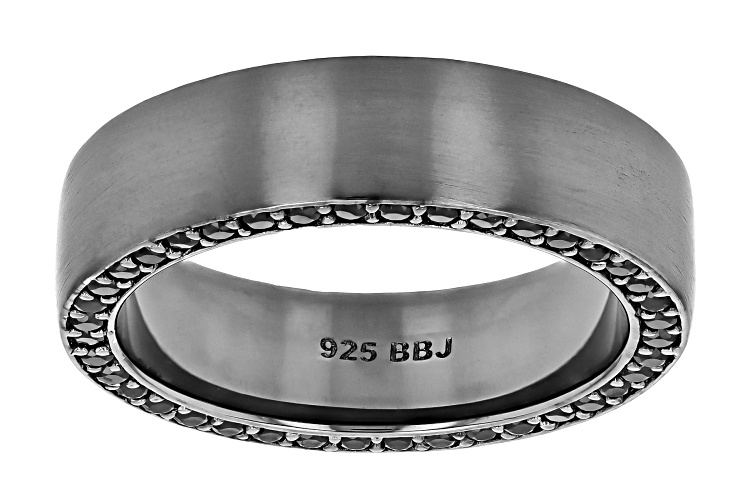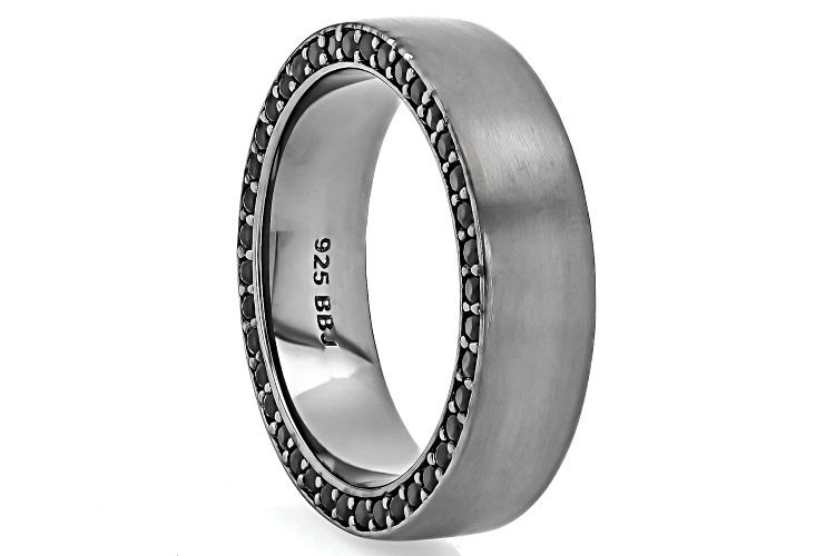 • 1.36ctw Black Spinel, Black Rhodium Over Sterling Silver Matte Finish Edge Eternity Wedding Band - Size 13