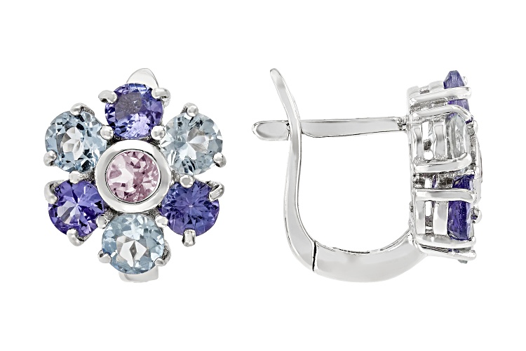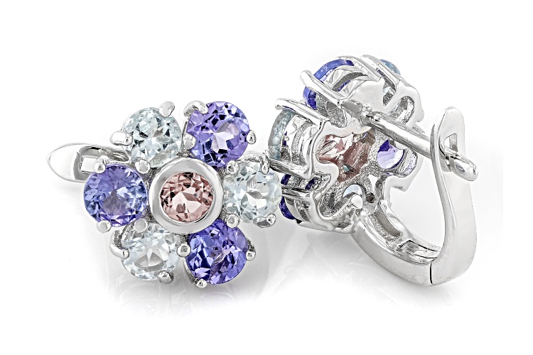 1.50ctw Tanzanite With 1.20ctw Aquamarine & 0.20ctw Morganite Rhodium Over Sterling Silver Earrings