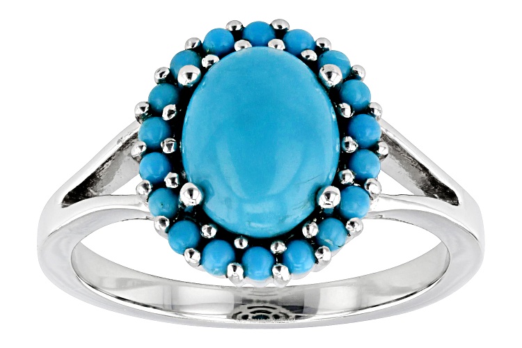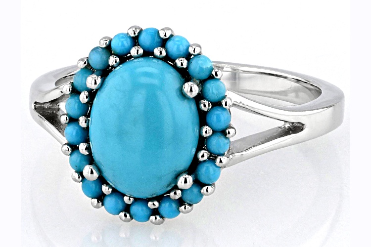 9x7mm Sleeping Beauty Turquoise Rhodium Over Sterling Silver Ring - Size 11