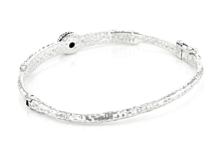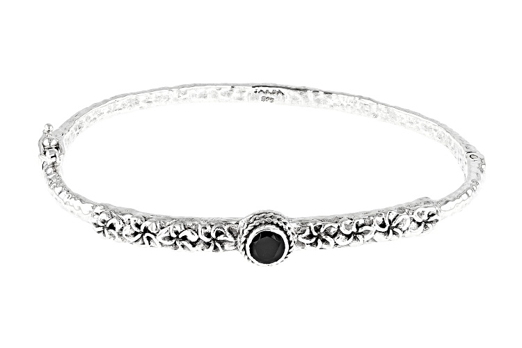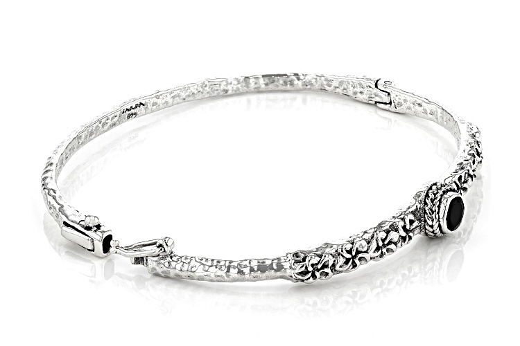 Artisan Collection Of Bali™ .57ct Round Black Spinel Sterling Silver Bangle Bracelet. Measures approximately .31"W. Hinged closure. Safety. Finished under gallery. Oxidized finish.