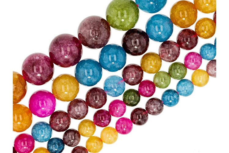 • Multicolor Quartz Assorted Size Round Bead Strand Set of 5